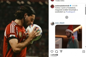体育资讯10月13日讯 匈牙利在世预赛2-0击败亚美尼亚,匈牙利中场索博斯洛伊在球队取胜后更新了个人社交媒体,并发布了一张自己亲吻比赛用球的照片。