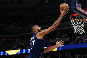 上半场,森林狼内线戈贝尔表现还可以,在17分钟的时间里,投篮9中4,罚球5中2,拿到10分5篮板1盖帽的数据。