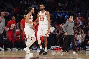 迈克-布朗表示,他希望今天让布伦森和布里奇斯出战34分钟左右,因为这是他计划在常规赛期间,为两人设定的常规出场时间区间。