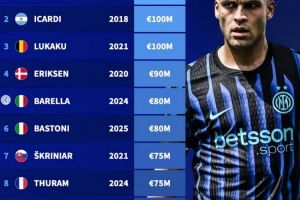 德转盘点国米vs那不勒斯队史身价榜:劳塔罗、奥斯梅恩分居榜首