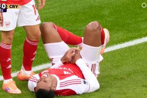 比赛第68分钟,加布里埃尔争顶后裆部直直撞向立柱。
