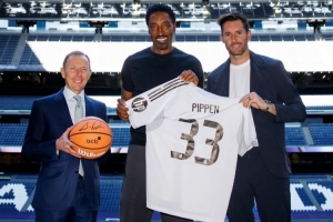 皇马社媒配文写到:“伯纳乌的特别嘉宾斯科蒂-皮蓬!”