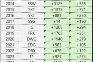 体育资讯11月10日讯 昨日S15全球总决赛上,T1击败KT夺得冠军,赛后韩网整理历年S赛冠军的前15分经济差,其中今年T1是唯一一支负15分经济差夺冠的队伍!