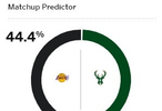 今天ESPN预测了本场胜率,湖人为44.4%,雄鹿则是55.6%。