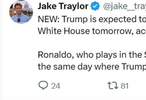 根据白宫特派记者Jake Traylor的消息,当地时间周二下午,特朗普将在白宫会见葡萄牙足球巨星克里斯蒂亚诺-罗纳尔多。