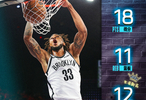 篮网中锋尼克·克拉克斯顿此役出战34分钟,13投7中罚球7中4,砍下18分11个篮板和生涯新高的12次助攻,得到职业生涯的首次三双数据。