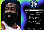 55分也创下快船队史单场得分新高,此前是麦卡杜的52分。这么一来,哈登也成为了NBA历史上首位保持着两支不同球队队史单场得分纪录的球员,效力火箭单场轰下61分是队史单场最高分。