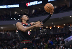 76人新星马克西本场继续扛起重任,与鲍威尔展开对飚,次节还命中一记神奇转身压哨三分。