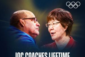 中国排球教练郎平与古巴摔跤教练劳尔·德·赫苏斯·特鲁希略·迪亚斯共同领取了国际奥委会颁发的教练终身成就奖。该奖项由国际奥委会主席克里斯蒂·考文垂和国际奥委会运动员随行人员委员会主席谢尔盖·布勃卡共同颁发。